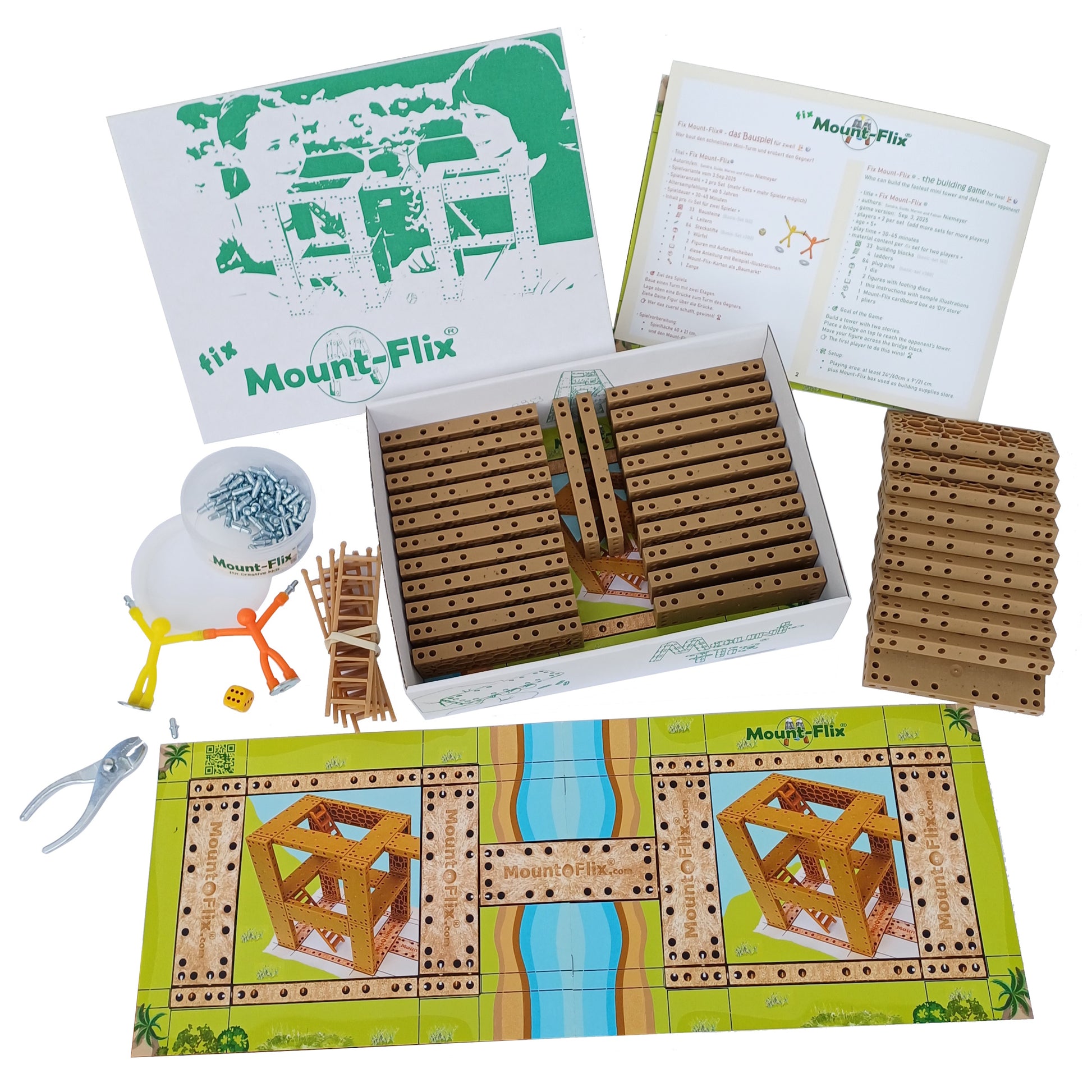 Kreativität und Vorstellungskraft, motorische Fähigkeiten, Konzentration, handwerkliches Geschick, 3 D Verständnis und ganz viel Spiel, Spaß und Freude sind mit Mount-Flix garantiert.